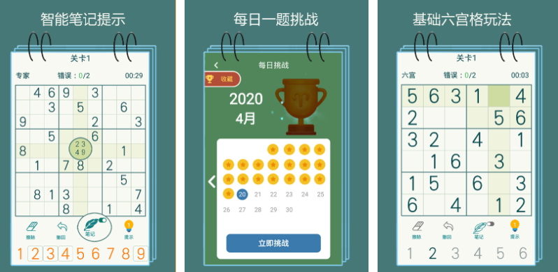 小學(xué)生和數(shù)獨高手都可下載這款小型手游玩玩看,以數(shù)獨為基礎(chǔ)打造的游戲關(guān)卡解謎元素齊備,提示功能比較良心能快速讓大家洞悉數(shù)獨的規(guī)則,只需在空格區(qū)域填滿阿拉伯?dāng)?shù)字既可完成任務(wù),計分板道具的輔助會讓數(shù)字的排列更加明朗,沉浸式數(shù)獨互動解謎環(huán)節(jié)助力提升孩子的智商,九宮格跟六宮格等數(shù)獨任務(wù)玩起來也毫無難度。