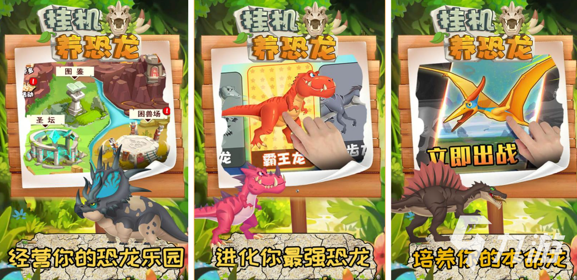 《掛機養(yǎng)恐龍》是一款融合合成與養(yǎng)成玩法的趣味手游,玩家在游戲匯總需孵化出屬于自己的恐龍,通過合成進化出更強大的恐龍,其中最有趣的是三個屬性相同的恐龍蛋能孵化出一個美麗的精靈。游戲提供了大量的任務與挑戰(zhàn)模式,捕獵遠古怪獸、探索遠征地圖等玩法,讓玩家在放置的同時也能感受到冒險的刺激。此外,該作支持掛機收集恐龍蛋、自動孵化恐龍,也能手動操作合成更高等級的恐龍。