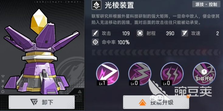源能類防御塔算是后期的主力輸出,光棱裝置絕對是這里面的頂流,它攻速快傷害高,一技能能麻痹敵人,二技能還能加傷害,1級天賦帶的攻擊折射效果,讓它打群怪也不費勁,中后期關(guān)卡里精英怪大多是重甲,光棱裝置打重甲傷害很穩(wěn)定,既能當主力輸出扛傷害又能偶爾控一下敵人,不管是單放還是扎堆擺,效果都特別好幾乎是每個玩家必帶的塔。