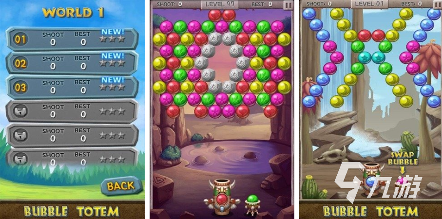 《泡泡龍消消樂(lè)》這款手游將將泡泡龍和消除兩中元素完美結(jié)合在一起,游戲玩家需要利用彈弓將同色泡泡發(fā)射出去,將屏幕上的所有泡泡消除。這款游戲借助了物理和計(jì)算知識(shí),以及玩家的反應(yīng)速度和策略思考能力,要通過(guò)多次射擊才能消除所有的泡泡。此外,這款游戲的難度等級(jí)由玩家們自定義,更好玩的游戲模式還能夠更刺激玩家的挑戰(zhàn)精神。