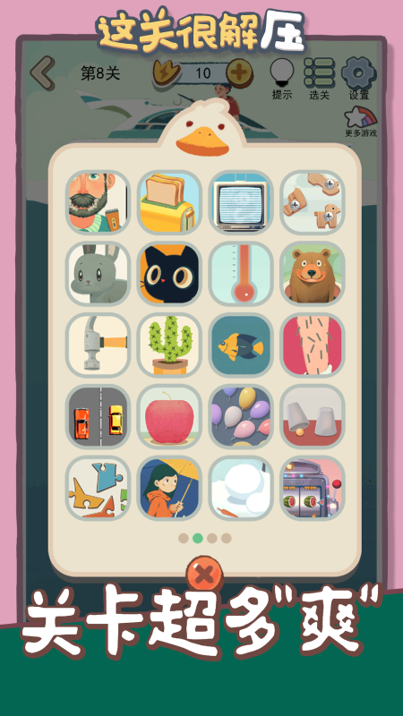 解壓輕松的休閑體驗(yàn)會(huì)是這樣一個(gè)絕妙的選擇,就在這款《這關(guān)很解壓》手游里面可以感受到它舒緩的背景氛圍,擁有熱鬧感的內(nèi)容可以從這里面來看到,并且搭配上各樣的提示信息,幫助玩家們即便是面對(duì)困難,也依舊可以有通關(guān)的希望,在這里還會(huì)有一些小任務(wù)需要你們?nèi)ネ瓿伞?/p>
