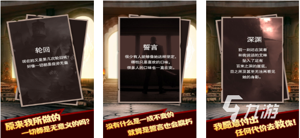 命運(yùn)輪回是款將推理解謎元素和文字?jǐn)⑹鐾娣ㄟM(jìn)行結(jié)合的輪回手游,整體玩法相對新穎且營造的氛圍也十分詭譎壓抑,經(jīng)典的文字?jǐn)⑹鲫J關(guān)機(jī)制與縝密的劇情邏輯設(shè)定都為本作加分不少,點(diǎn)觸屏幕觸發(fā)各種支線故事情節(jié)的設(shè)定也極具參與感,如果你也愛玩那種文字?jǐn)⑹鲋黝}的輪回類型手游不妨試試命運(yùn)輪回!
