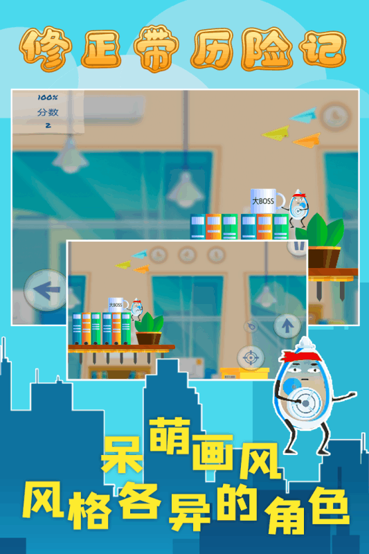 這是一款比較新穎的益智類型的手游,游戲主要圍繞的是一個修正帶,這款修正帶如何才能夠逃生呢?玩家在進行操作的時候,只需要左右兩邊的按按鈕就可以了,在游戲里面有非常豐富的關卡,等待著各位玩家來挑戰(zhàn),而且大家還可以去搜集散落的回形針,這樣就能夠獲得更多的積分。