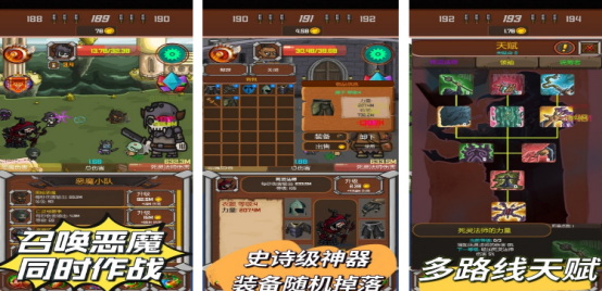 暗黑的風(fēng)格作為主色調(diào),除此之外還融入了多樣化的冒險(xiǎn)元素,這款游戲在創(chuàng)新之后也融入了召喚系統(tǒng),這里有不同的職業(yè)都任憑玩家隨意召喚,可以和您成為最強(qiáng)的得力助手,可通過逐漸升級(jí)以及提升能量的方式,擁有較強(qiáng)的戰(zhàn)斗實(shí)力,從而將更多的boss全部擊敗,還可在這里體驗(yàn)掛機(jī)的模式,無需太復(fù)雜的操作就能獲得稀有資源。