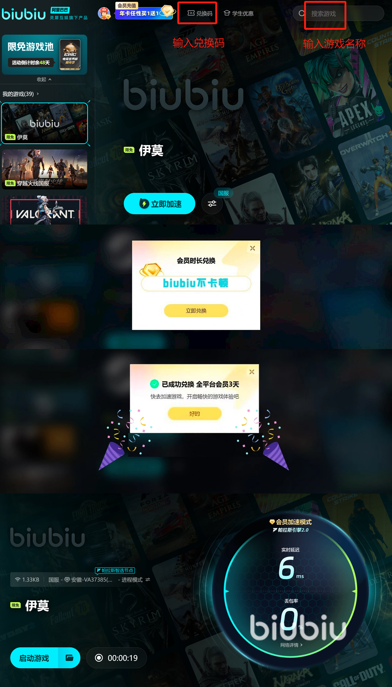 作為一款聯(lián)機互動游戲,沒有一個穩(wěn)定的網(wǎng)絡(luò)環(huán)境怎么行,玩家們可以點擊上方鏈接下載biubiu加速器,新用戶送24小時免費加速時間,輸入兌換碼【biubiu不卡頓】還能再加送3天,總共累計96小時的免費加速時長。