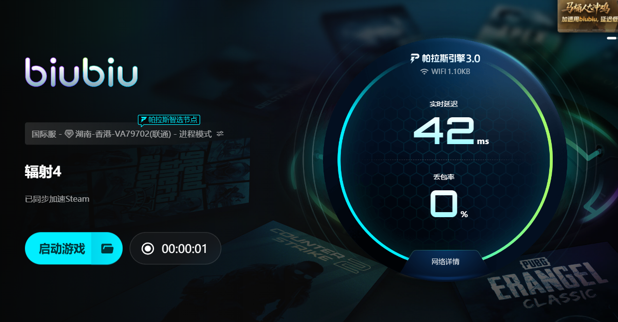 解決閃退問題,不僅僅靠刪MOD或重裝游戲,更重要的是保持?jǐn)?shù)據(jù)通道順暢。biubiu加速器在這方面表現(xiàn)突出,它可以針對(duì)Steam平臺(tái)進(jìn)行優(yōu)化,降低延遲和丟包,提升游戲加載效率。新用戶注冊(cè)即可獲得24小時(shí)免費(fèi)加速。輸入兌換碼【biubiu不卡頓】還能領(lǐng)取額外72小時(shí)加速,讓玩家能夠充分體驗(yàn)從安裝到運(yùn)行的穩(wěn)定過程,徹底擺脫閃退困擾,尤其適合希望順暢探索開放世界的玩家。