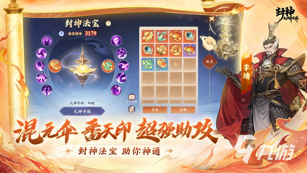 封神法寶重出。混天傘、番天印等驚喜法寶重現(xiàn)于世。玩家收集多種法寶,將它們搭配組合使用,獲得額外的戰(zhàn)術(shù)加成等。