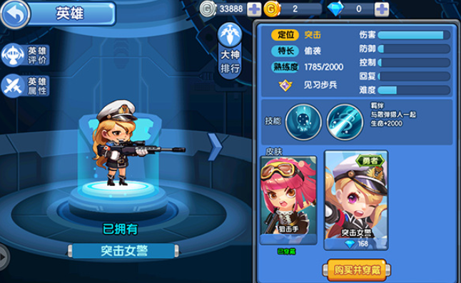小小突擊隊采用Q版卡通風格,游戲不同角色的技能差別也非常多樣,玩家需根據(jù)團隊陣容需求,選擇合適的角色參與戰(zhàn)斗,戰(zhàn)斗過程中玩家需與隊友配合利用角色技能組合形成壓制,游戲還加入了道具系統(tǒng),戰(zhàn)場內(nèi)會隨機刷新攻擊增益、快速回血等道具,玩家拾取后可短時間強化自身能力。