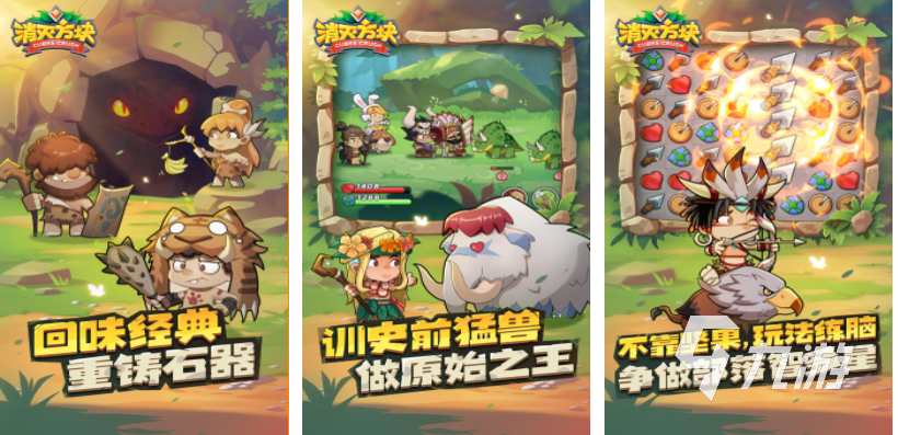 各種萌系十足的小怪獸入侵了原始人的家園,作為部落勇者的你會如何對付這些可愛生物呢?本作是款將三消和掛機放置元素結合的獵奇游戲,簡單玩法與較快的游戲節(jié)奏很適合在摸魚時候體驗,可愛的原始人畫風結合炫酷的技能帶來了視覺享受,這款原始人題材的三消類作品你想不想試試?