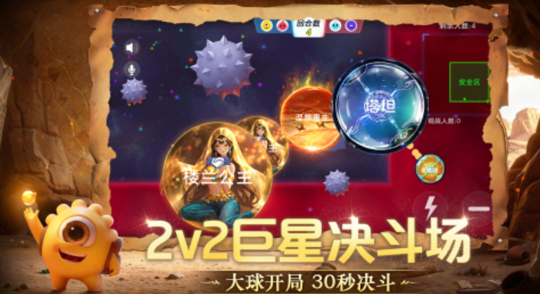 整個(gè)游戲是玩家控制球體,不斷的去吞噬對手,最終玩家將會變得十分的強(qiáng)大,也就是我們所說的巨無霸。雖然玩家這時(shí)候非常的強(qiáng)悍,但不要忽略對手,因?yàn)閷κ趾苡锌赡軙窊敉婕?,畢竟整個(gè)游戲所采用的是大魚吃小魚的原則。雖然整個(gè)規(guī)則相對簡單,但玩家卻需要講究深度的策略性。另外玩家如果在體驗(yàn)游戲的時(shí)候想要滿足社交需求,他其實(shí)也能夠一一體驗(yàn)。