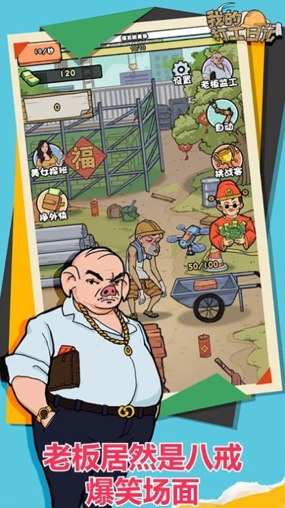 《打工搬磚人的生活日?!吠婕覍⒁砸幻u場(chǎng)的底層工人開(kāi)始,來(lái)開(kāi)啟每天高強(qiáng)度的體力勞作生活,游戲中模擬了一個(gè)趣味紛呈的磚廠(chǎng)場(chǎng)景,另外又在其中穿插了一些在抖音中爆火的段子,在人物的設(shè)定上更是一反常態(tài),將磚廠(chǎng)的管理員設(shè)計(jì)成了牛魔王、豬八戒等角色,在這里玩家要通過(guò)瘋狂的搬磚來(lái)累積財(cái)富,并利用各種套路扳倒豬八戒成為磚廠(chǎng)的廠(chǎng)長(zhǎng)。