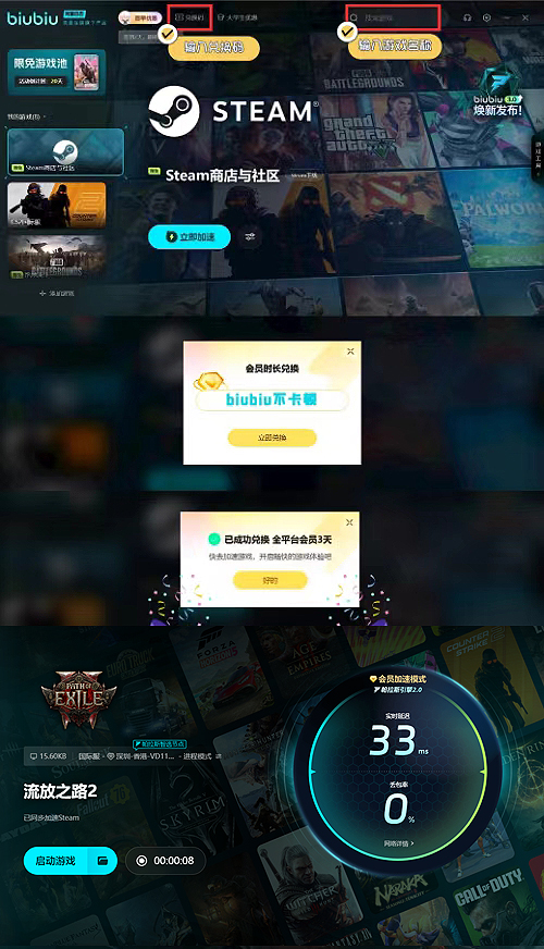 流放之路2服務(wù)器搭建位置遠,網(wǎng)絡(luò)連接容易出現(xiàn)問題,為了避免卡頓,大家要安裝好用的加速器。biubiu實現(xiàn)海量游戲加速,它可以試用,新用戶直接送一天免費體驗時長,還能使用biubiu不卡頓兌換碼領(lǐng)三天免費時間。