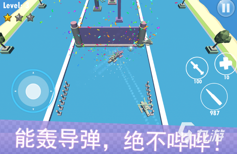 直升機(jī)冒險(xiǎn)大作戰(zhàn)是款超級(jí)耐玩的直升機(jī)戰(zhàn)斗游戲,卡通3D的游戲畫風(fēng)別具一格,如同玩具般的直升機(jī)造型也非??蓯?,直升機(jī)有兩種不同的攻擊方式可以對(duì)敵人進(jìn)行打擊。這款迷你的空戰(zhàn)游戲整體操作難度不大,緊靠方向鍵和攻擊建就可以完成各種任務(wù)。這款空戰(zhàn)游戲的爆炸音效和打擊感可圈可點(diǎn),喜歡武裝直升機(jī)的玩家不妨一試。