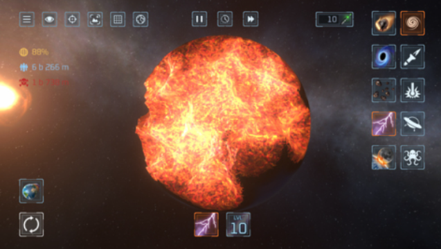 這款模擬器游戲模擬了一整個(gè)星球的毀滅過(guò)程,黑洞、核彈等災(zāi)難性道具大家都可以隨便使用,全三維的建模將星球形象和爆炸效果呈現(xiàn)的更加逼真,游戲自由度也不錯(cuò)各種道具可盡情免費(fèi)使用,夸張的視覺(jué)效果和震耳欲聾的音效也是點(diǎn)睛之筆,你也安裝這款特殊的模擬器游戲感受下毀滅星球的快樂(lè)吧。