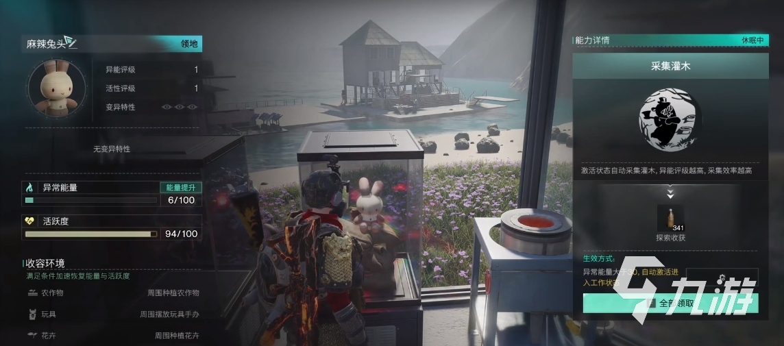 小編分享一個(gè)技巧,那就是在采集時(shí)要注意使用正確的工具,特別是第一次采集的情況下,不要用電鋸要用斧頭慢慢采集直到采集完成,這樣才有較大概率獲得乖乖兔。獲得后安置在收容箱內(nèi)后要放有農(nóng)作物、花卉和玩具來(lái)加速它異常能量的恢復(fù)。