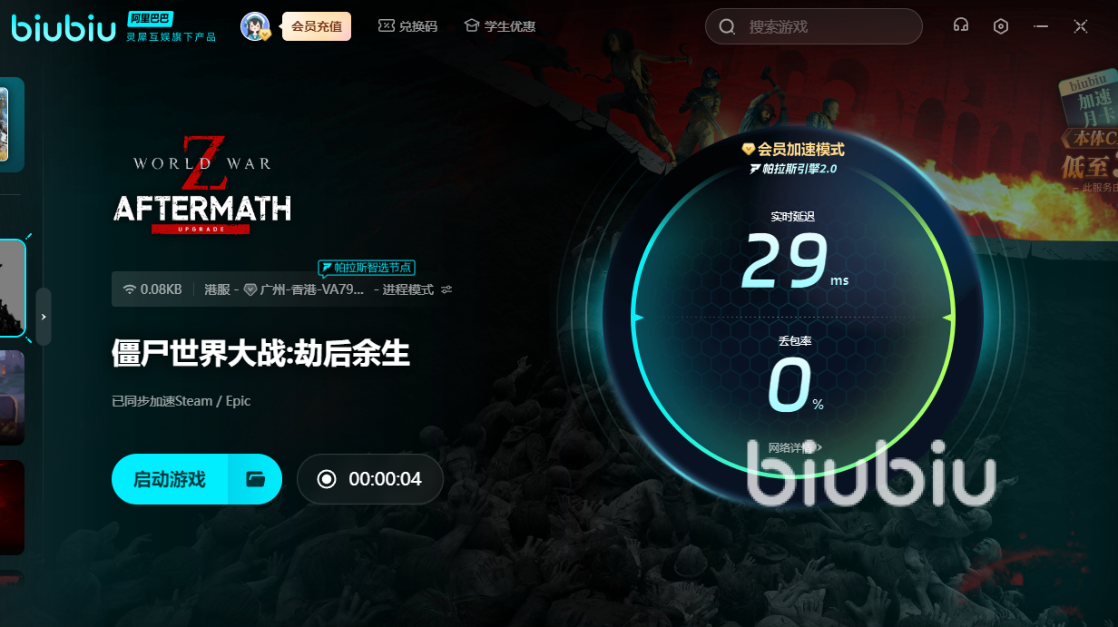 僵尸世界大戰(zhàn)劫后余生作為玩法獨(dú)特的僵尸射擊大作,如今暫時沒有上線國服。所以為了被邀請來到僵尸世界中解決人們,我們要用上biubiu,加速后才能成為救世主。新用戶的話可領(lǐng)取3小時的免費(fèi)加速,另外新老用戶輸入【biubiu不卡頓】,便可額外獲得三天免費(fèi)加速。若是在冰天雪地中求生時太卡,更容易被僵尸以及冷凍天氣消滅。要用上加速器,才能及時躲避周遭的危險(xiǎn),并擁抱熱烈的陽光。