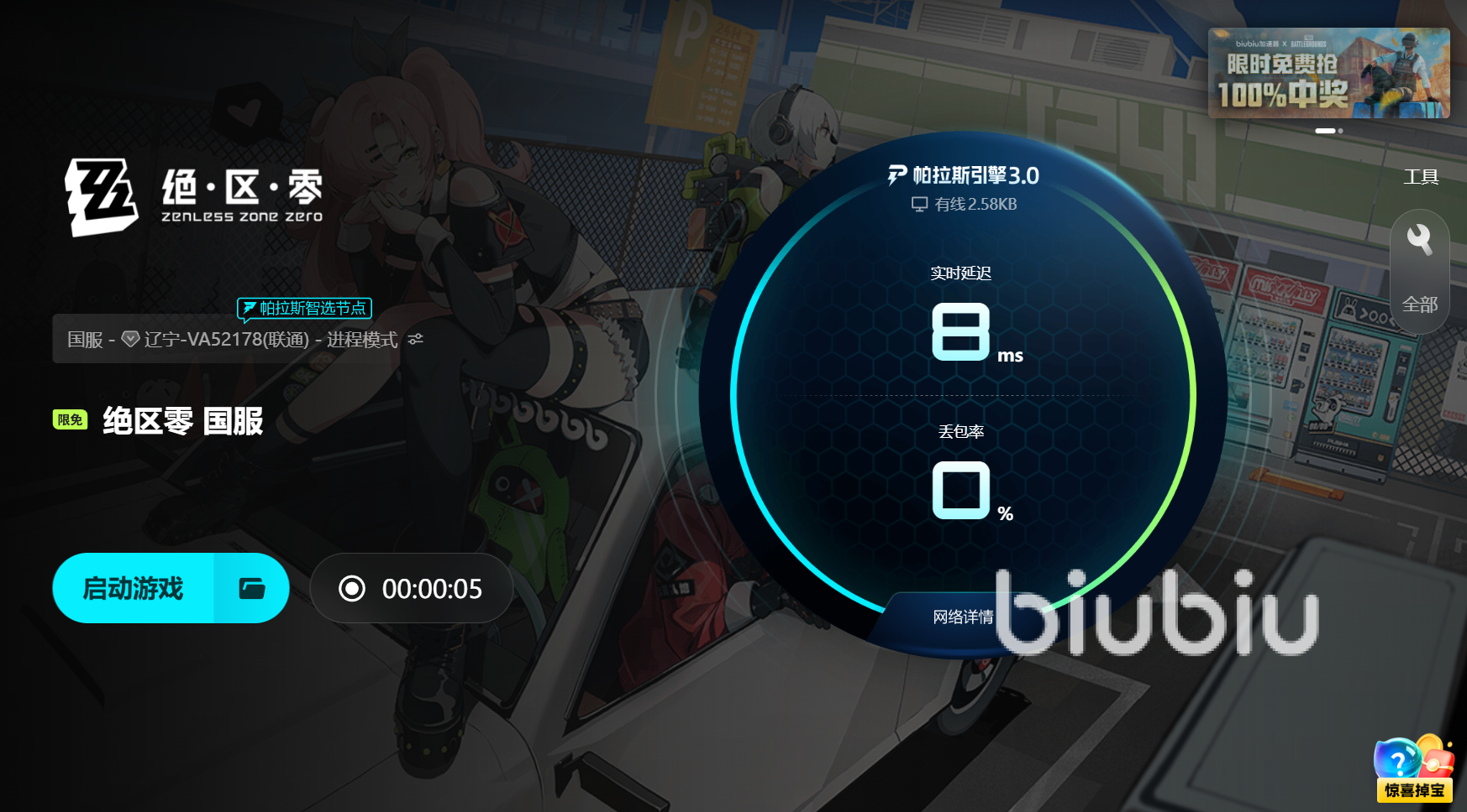 所以,如果你也正被絕區(qū)零閃退、掉線、卡頓困擾,不如現(xiàn)在就下載biubiu加速器,用免費(fèi)時(shí)長(zhǎng)先試試效果。開(kāi)啟之后,你就能安心推進(jìn)主線、放心打副本,不再擔(dān)心關(guān)鍵時(shí)刻崩潰,讓每一場(chǎng)戰(zhàn)斗都能完整體驗(yàn),把更多時(shí)間用在享受動(dòng)作打擊和角色養(yǎng)成上。
