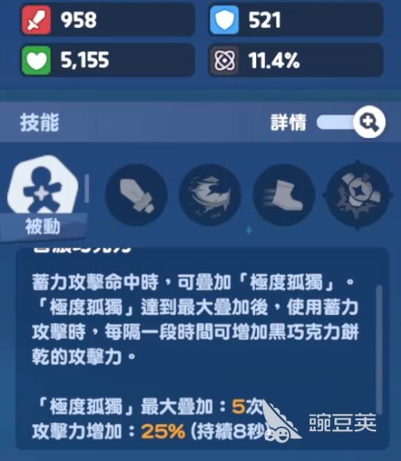 黑巧克力餅干的被動技能極度孤獨需通過蓄力攻擊命中敵人疊加層數(shù),每層疊加后滿5層即可在8秒內(nèi)實現(xiàn)攻擊力翻倍,但需持續(xù)蓄力來維持層數(shù),所以就讓他有一定的門檻。而技能倍率是普通攻擊為基礎倍率無加成,蓄力攻擊則有1.2倍傷害且命中疊加一層被動。蓄力雖然需要時間,但爆發(fā)傷害很高,也是我們使用黑巧克力打出爆發(fā)的關鍵。黑暗劍擊(小招)基礎7.5倍傷害,滿層被動時增至14倍+,黑暗襲擊(必殺)能打到20倍+傷害,冷卻30秒,滿星穿透50%防御。而且蓄力條讀滿瞬間立即松手,會比讀條結(jié)束自動釋放快一點點,估計也就零點幾秒左右,這零點幾秒足夠你在BOSS抬手前打出第一刀,既疊層又躲技能,而且黑暗劍擊的閃電傷害會觸發(fā)后悔卡的額外暴傷,所以小招后立刻接普攻再蓄力,能把兩層增益時間完全利用。