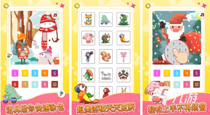 這是款非常休閑的像素畫畫游戲,玩家可以在像素的繪畫世界中自由徜徉,游戲中的每一幅好看圖片都是像素風(fēng)格的,玩家可以在不同的像素模板上填上顏色,將原本單調(diào)的模板變成一幅像素藝術(shù)品。通過畫面上數(shù)字的提示你可以輕松作畫,每周更新的超多美圖讓你始終保持新鮮感,通過自己的雙手把黑白模板填滿顏色會(huì)有成就感的。