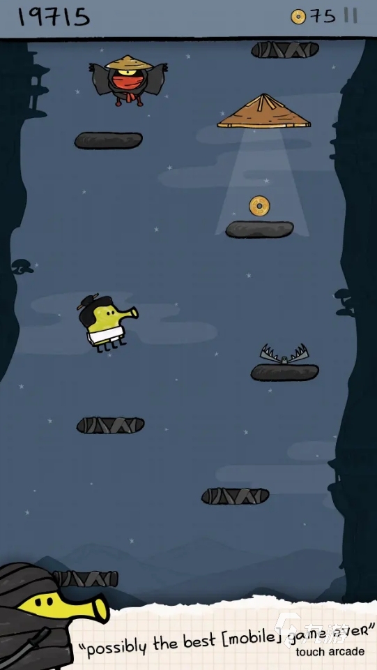 涂鴉跳躍是手繪畫風(fēng)的一款跳躍類游戲,人們將在游戲內(nèi)協(xié)助可愛的外星小怪獸不斷向上跳躍來沖擊高分,并且在跳躍時(shí)還有機(jī)會(huì)拿到各種能提高跳躍效率的道具,讓自己能一次性上升很多層。當(dāng)然,也要提防可能隨時(shí)會(huì)出現(xiàn)的敵人,并操控小怪獸去消滅它們,一旦不小心與它們碰上或是被它們的攻擊打到,那只能飲恨出局。