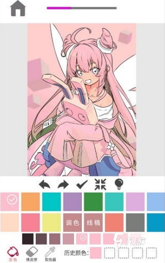 大家可以通過其中的各種畫圖工具來完成線稿,做線稿的時候還可以通過調(diào)節(jié)來讓黑白線條調(diào)整成你想要的弧度,其中的顏色就算沒有你想要的顏色,玩家還可以通過調(diào)色來將其中的兩種顏色的調(diào)和在一起形成新的顏色。