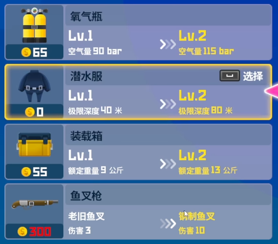 游戲前期咱們本身的設(shè)備并不算好,在對付一些中大型的魚類的時(shí)候就會覺得有些費(fèi)力。前期只要資源充足的話咱們便可以考慮提升一下自身的裝備,這樣的話之后在捕魚方面也會更加容易一些。