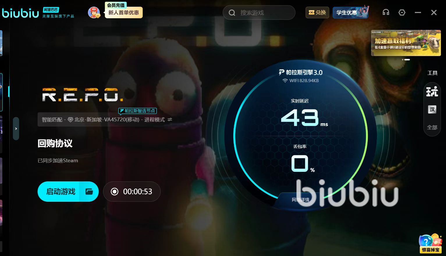 該領(lǐng)的福利絕不能錯(cuò)過,新用戶注冊(cè)biubiu加速器后,可獲得專屬服務(wù)時(shí)間24小時(shí),此外,使用口令【biubiu不掉線】繼續(xù)使用頂級(jí)網(wǎng)絡(luò)服務(wù)72小時(shí),這樣一來,新手總共擁有96小時(shí)免費(fèi)試用,足以測(cè)試REPO的游戲優(yōu)化效果。