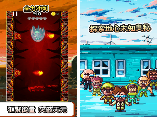 在這一個(gè)游戲中,你就成為一名科研者,需要來(lái)到地心的深處去闖蕩。你會(huì)看到會(huì)有很多的怪物,甚至還會(huì)有火山等不同的地方,主要的玩法就是躲開障礙物,然后打敗怪物。還有好幾種的挑戰(zhàn)模式可以解鎖,到了后期你還可以解鎖一些新的角色。整個(gè)游戲的代入感還是很強(qiáng)的,這一路探索的刺激感更是停不下來(lái)。