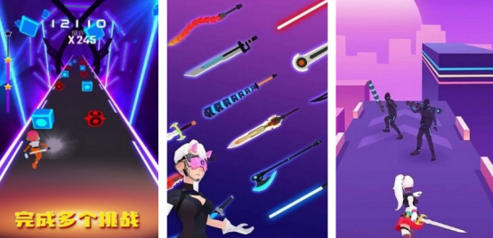 將刀劍以及音樂跑酷的元素合二為一,在不同的賽道場景里,玩家會遇到各種各樣的障礙物,當(dāng)遇到隨機(jī)出現(xiàn)的障礙物時,需要選擇自己喜歡的武器。突破障礙物并順利到達(dá)終點,在此過程中可能會迎接各種挑戰(zhàn),雖然操作的方式很簡單,但卻比較考驗玩家的反應(yīng)能力和手速。在逐漸創(chuàng)新之后還有更多趣味的挑戰(zhàn)等您一起參與。