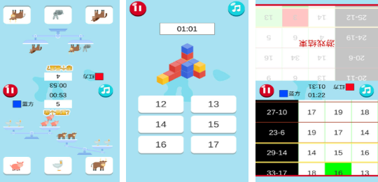 游戲里面會(huì)有數(shù)字知識(shí)的雙人對(duì)戰(zhàn)游戲,彼此雙方可以選紅藍(lán)方,然后通過(guò)口算答題或者是比重量的任務(wù)去比拼自己的腦力。里面還會(huì)涵蓋20以內(nèi)的加減法,還有百以內(nèi)的乘除,玩家就需要同時(shí)答題,回答的比較快,并且準(zhǔn)確的這一方就可以得分,最終得分者高獲勝。把學(xué)習(xí)融入到游戲中并不會(huì)很枯燥,如果答錯(cuò)題目還會(huì)有一個(gè)簡(jiǎn)單的講解,贏了之后還可以調(diào)侃對(duì)方,確實(shí)很輕松。