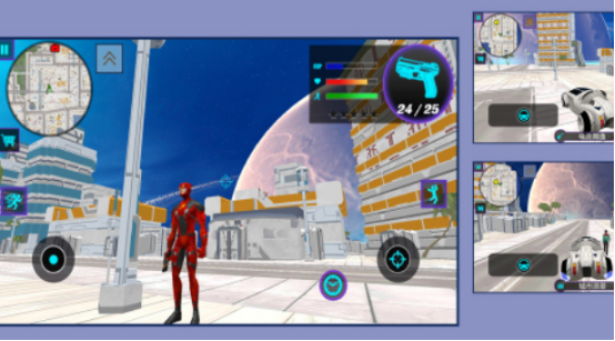 應該大家對閃電俠也特別熟悉吧,其實閃電俠和蝙蝠俠等多種角色都一樣,身負重任最主要就是守護整個世界的和平,遇到各種敵人做惡作劇時需要消滅敵人,面對不同敵人時,都要巧妙選擇合適的武器,屏幕上可能會看到你孤身一人穿梭在城市里,再仔細觀察城市的環(huán)境。屏幕的右下角都會有瞄準以及攻擊的作戰(zhàn)武器,而左上角又會將偌大的地圖場景刻畫在其中,你可親自看到自己所處的位置以及城市中敵人的位置。