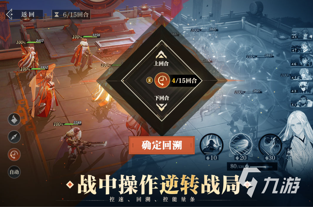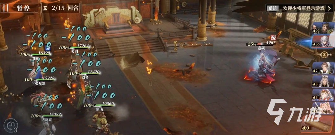 這里采用JRPG式行動條機制,支持控速、回溯、打斷連招等操作,突破傳統(tǒng)回合制限制。然后九宮格布陣結合天氣、機關互動(如點燃火盆、擊倒屏風),增強策略深度,如此即可讓大家發(fā)揮自己的想象力,成為揮斥方遒的一代智將。