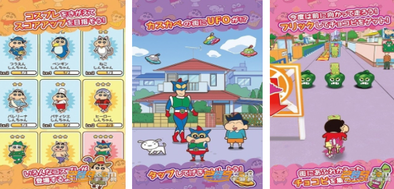在日漫畫風中,蠟筆小新需要完成不同關卡的闖關。蠟筆小新角色系統(tǒng)中,玩家可為他更換嬰兒以及廚師套裝,更多服裝等待蠟筆小新獲得金幣后解鎖。在跑道設計上,跑到周圍的房屋設計與漫畫相差不大,蠟筆小新在跑酷過程中還會遇到帶有兇惡表情的南瓜障礙物,使用道具攻擊或直接跳躍都是可以的。