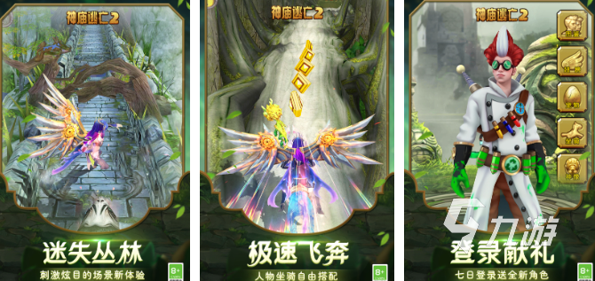 玩家以3D視野參與到眾多神廟主題玩法中。跑酷元素比較豐富,不僅有阻攔的樹木,玩家還會在視角轉(zhuǎn)換的同時選擇不同的轉(zhuǎn)彎。 跑酷難度越來越大,玩家需要使用跳躍來避開障礙物以及斷崖的地方。金幣是有趣設定,玩家獲得后就相當于可以購買跑酷道具,幫助玩家更好地完成神廟逃亡的任務。