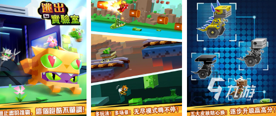 卡通畫質(zhì)的實驗室逃亡主題眾多,帶有自動炮彈攻擊的障礙物設定更增添一絲危險,玩家還可以前往帶有懸崖設定的天空主題進行逃亡。在皮膚系統(tǒng)中,玩家可根據(jù)5種不同的形態(tài)選擇喜愛的類型,并在后期為之配備多個部位的部件。跑酷角色更帶丑萌元素,玩家在跑酷過程中哈哈大笑。