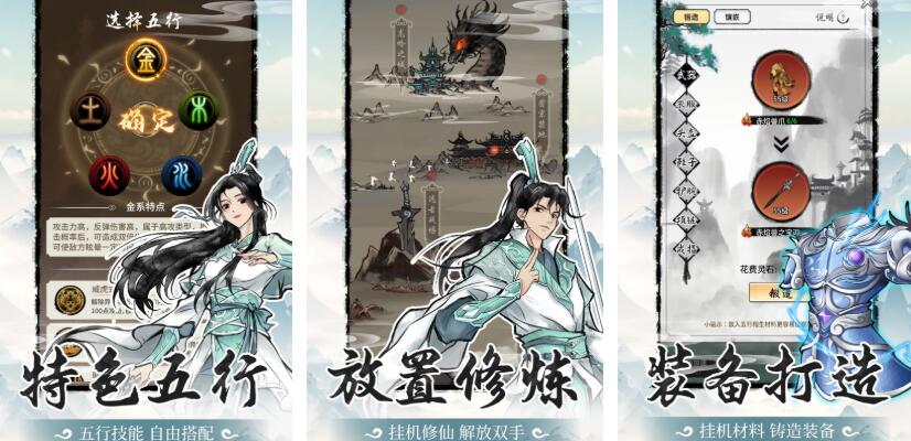 《山海試煉》雖然以掛機和收菜這兩個最平常的玩法為核心,但去是一款受歡迎的rpg手游,不肝不氪的同時可以讓所有玩家在碎片化的時間內(nèi)享受修仙的快樂。里面沒有復(fù)雜的指導(dǎo),想要玩什么全憑大家自行摸索,這種模式極大地增強了游戲的趣味性。游戲內(nèi)的職業(yè)是以五行而分布的,且五行職業(yè)相生相克,戰(zhàn)斗時還可以召喚戰(zhàn)寵助力飛升。