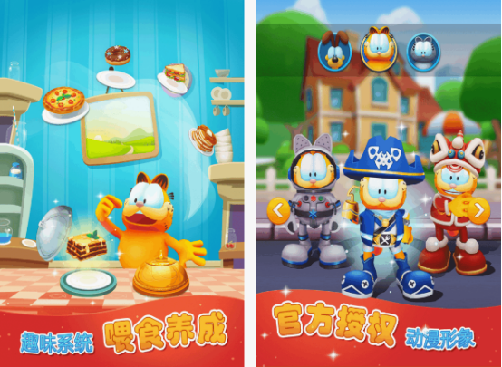根據(jù)加菲貓這個動畫片正版授權(quán),所以能看到大家耳熟能詳?shù)膭赢嬈巧?,也是非常可愛又真?shí)的形象。無論是利用不斷跑酷的方式,獲得金幣來對其喂食養(yǎng)成,還是利用簡單的方法,不斷的躲避障礙物,完成跳躍滑動等。這都是玩法比較豐富的,在對加菲貓喂食的過程當(dāng)中,涵蓋了超過百種菜品,可自由的喂養(yǎng),同時也支持二人pk模式。