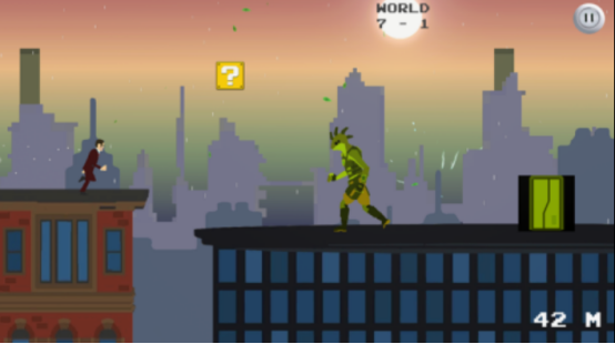 玩家會在這款游戲當(dāng)中面臨外星人入侵,為了更好的抵抗外星人,必須要通過簡單的控制方法,在屋頂?shù)沫h(huán)境當(dāng)中,跳躍躲避障礙,來躲避為新人所造成的威脅。無論是所涵蓋的建筑物,需要從一個跳躍到另一個與里面的外星人進(jìn)行無限的競技,還需要在不斷跑酷的過程當(dāng)中,展現(xiàn)出自己超強(qiáng)的戰(zhàn)斗實(shí)力,才能順利的通過關(guān)卡完成任務(wù)。