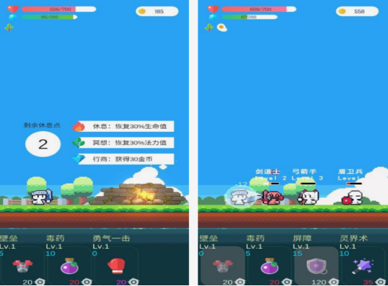 游戲會(huì)遇到很多隨機(jī)的事件以及技能,在面對有龍,甚至是騎士亡靈的世界當(dāng)中以后,既可使用復(fù)活的魔法,利用喜歡的英雄以及隊(duì)伍挑戰(zhàn)未知的領(lǐng)域。玩法也是自由又豐富的。其中在面對地方單位時(shí)利用地形限制對方移動(dòng)的方式,盡可能的克制地方。具有肉鴿多項(xiàng)成長正確的選擇以后,幫助角色具有強(qiáng)大的戰(zhàn)斗力,還支持多種技能自由組合。