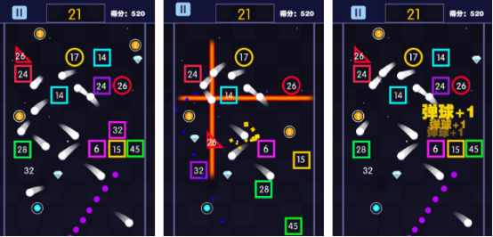 經(jīng)典的彈射類模式老少皆宜,整體操作足夠簡單,只需一只手指就能體驗種種游戲內(nèi)容,無論是普通的小球彈彈彈,還是具有趣味的方塊組合,都在這里呈現(xiàn),玩家按住屏幕,然后拖動水平,瞄準磚塊,瞄準之后快速松開手指就能夠輕松發(fā)射,游戲具有極高的可靠性,也還原童年時刻的歡樂時光。