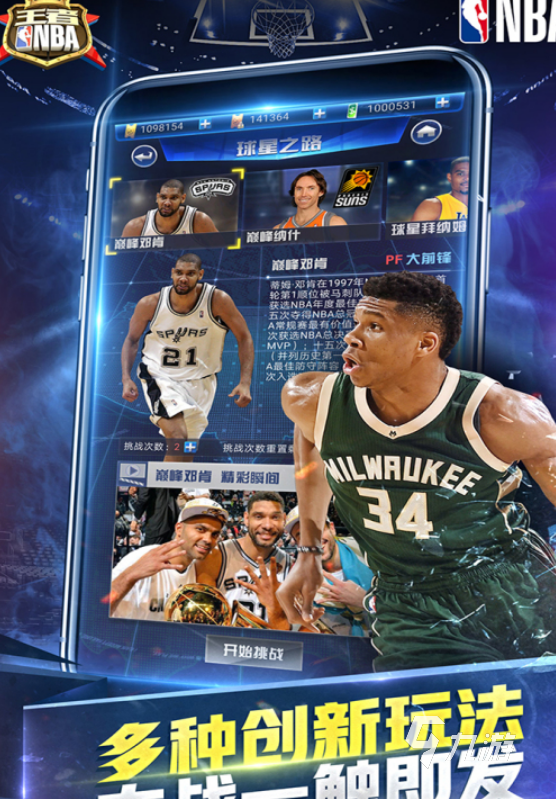 這是一款由NBA授權(quán)的正版游戲,喜歡籃球的小伙伴們可以選擇下載。游戲中各種明星應(yīng)有盡有,如詹姆斯、庫里、杜蘭特等不同隊伍的頂級選手。