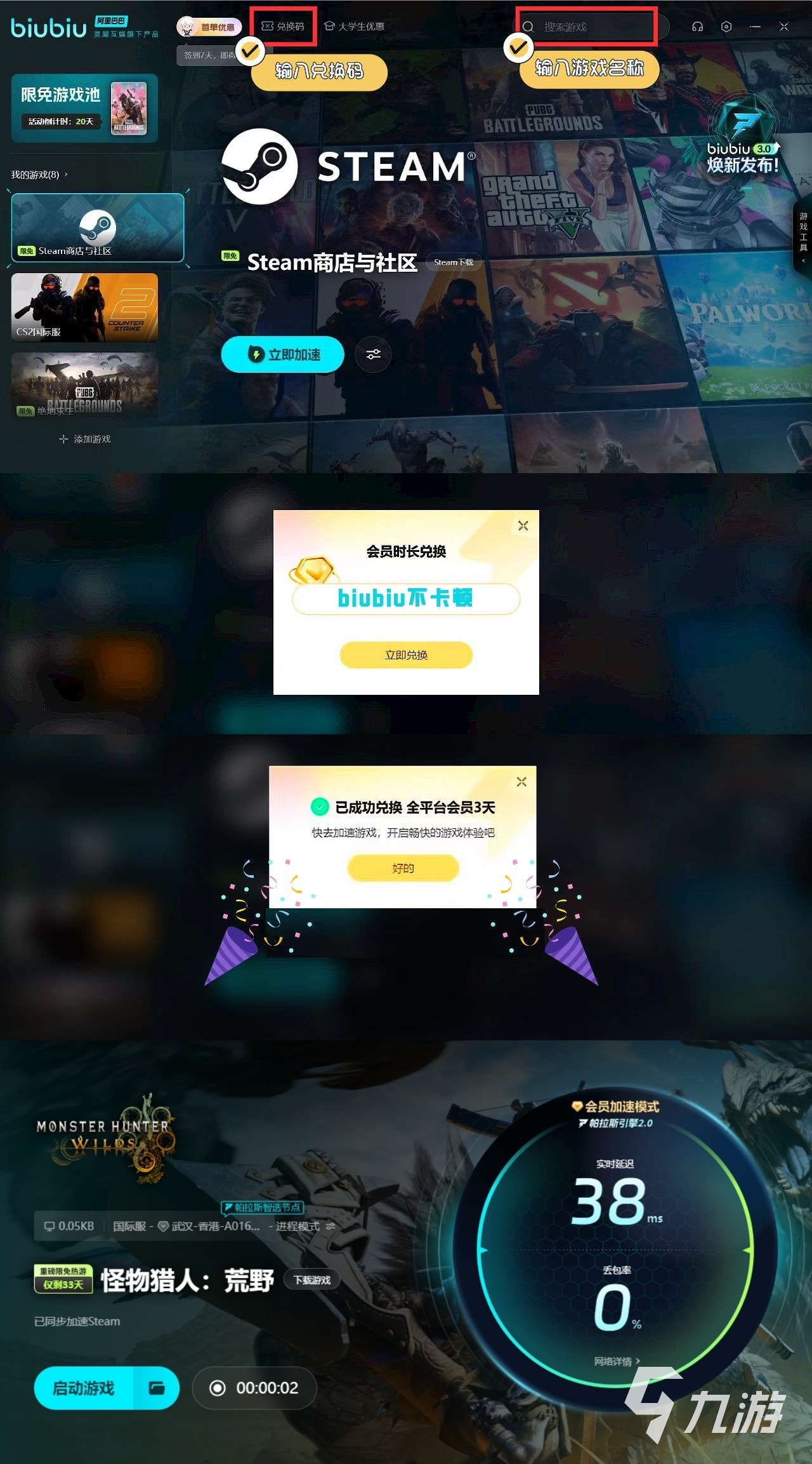 在體驗(yàn)游戲的過程中,大家也是一定要借助加速器的幫助,它能讓我們有效的規(guī)避卡頓掉幀的問題,玩家們可以直接點(diǎn)擊上面鏈接下載biubiu,針對(duì)新用戶biubiu是直接送到3小時(shí)免費(fèi)加速時(shí)長(zhǎng),而所有的玩家還可以憑借【biubiu不卡頓】這一兌換口令再去額外兌換3天的加速機(jī)會(huì)。biubiu是堪稱怪獵不炸房的熱門加速器,在2月7日到17日期間,玩家們是可以限時(shí)免費(fèi)加速怪獵游戲,同時(shí)大家還可以參與到抽獎(jiǎng)活動(dòng)之中,是有機(jī)會(huì)得到游戲本體、實(shí)物周邊獎(jiǎng)勵(lì),還有最長(zhǎng)365天的biubiu加速時(shí)長(zhǎng),有助于玩家們更好的完成加速體驗(yàn),另外邀請(qǐng)好友每天還能多抽獎(jiǎng)一次,每日0點(diǎn)會(huì)重置加速任務(wù),玩家們可千萬(wàn)不要錯(cuò)過。