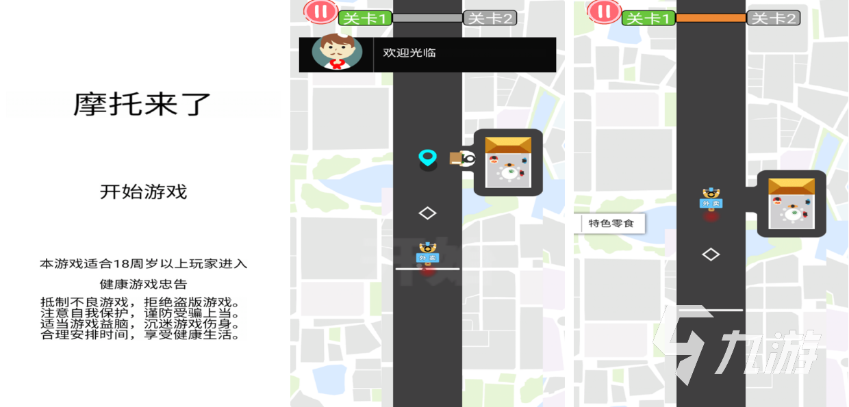 《摩托來了》里送的貨物都是美食,是個(gè)模擬外賣小哥騎著摩托車送貨的游戲,玩家可以接受很多送餐的任務(wù)但是需要在規(guī)定的時(shí)間里送到,如果送餐超時(shí)了就得不到傭金了哦,游戲里的道路很是復(fù)雜,想要快速到達(dá)雇主的身邊就要好好規(guī)劃騎摩托車的路線,同一時(shí)間可以接受三個(gè)送餐的任務(wù),全部做完后再接受新的。