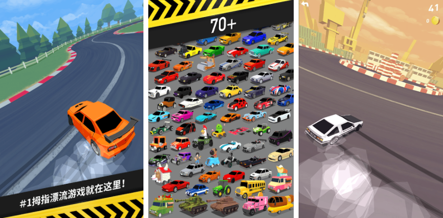 每一個(gè)游戲里都會(huì)有漂移的設(shè)定,通過漂移玩家才能快速通過彎道,拇指漂移特別版會(huì)設(shè)定大量的彎道,玩家需要在駕駛的過程中不斷漂移,才能讓汽車在保持速度的情況下平穩(wěn)的前進(jìn),游戲里車輛有70多種可以選擇,有的現(xiàn)實(shí)生活中比較常見的轎車也有坦克,火箭車或者是各種設(shè)定獨(dú)特的另類汽車,可以讓玩家自由駕駛漂移。