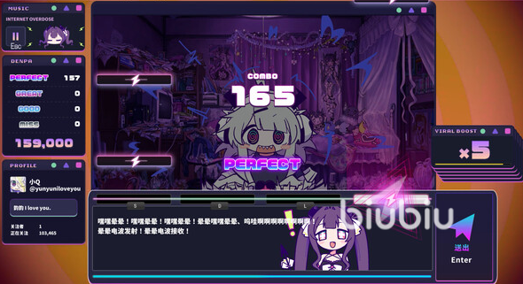 目前大家可以游玩的部分都是點(diǎn)播歌曲,包含了很多經(jīng)典曲目,讓大家在游戲的同時(shí)還能享受極致的聽覺盛宴。目前的主角就是小q,喜歡一個(gè)叫做暈暈的二次元角色。