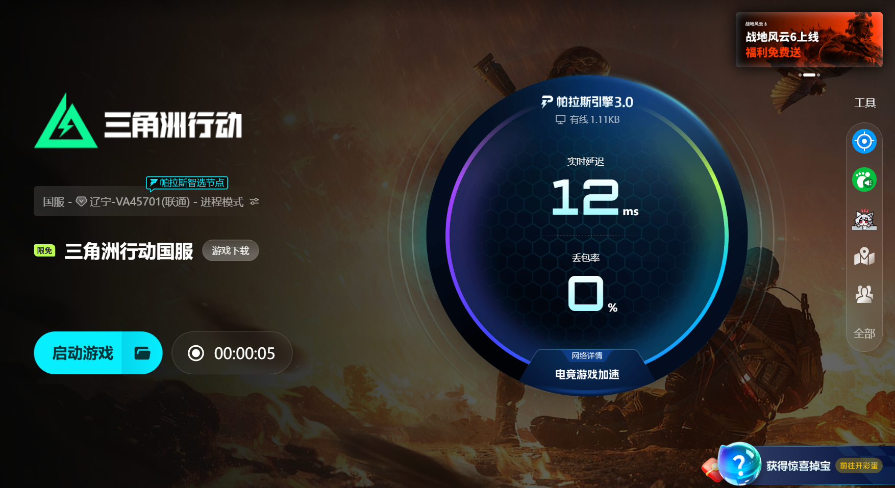 使用biubiu的過程也非常簡潔。打開客戶端,選擇三角洲專屬加速模式,系統(tǒng)會自動完成線路匹配和優(yōu)化,無需手動設置。后臺運行輕盈,不占用顯存和CPU資源。加速開啟后重新進入游戲,加載速度更快,匹配響應更穩(wěn)。過去那種剛加載到一半就卡死的情況大幅減少,戰(zhàn)斗能順利進行到結算畫面。整個過程悄無聲息,卻能明顯感覺到網(wǎng)絡被理順,連接變得干凈連貫。
