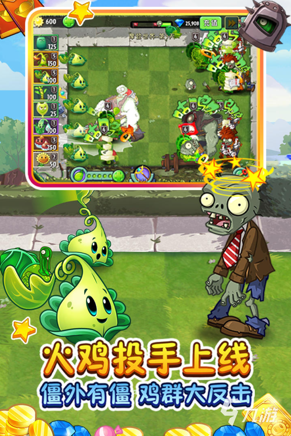 《植物大戰(zhàn)僵尸2》以植物抵御僵尸攻擊的玩法為主。游戲提供植物能量以及手勢(shì)道具等資源,并可以選擇游戲關(guān)卡。這版本里面,還融入古埃及狂野西部等3大關(guān)卡這些新鮮元素。玩家可以通過即時(shí)戰(zhàn)略、卡片收集等功能,操控植物防御僵尸,從而守護(hù)植物園。