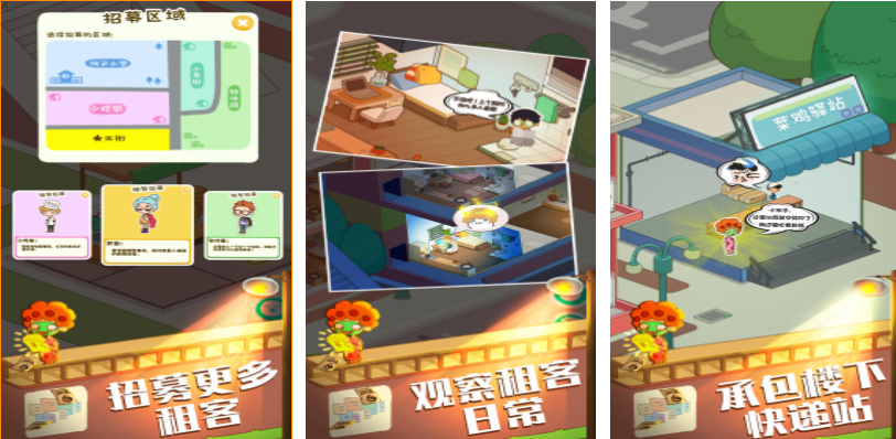 房東模擬器這款游戲?qū)崿F(xiàn)了許多玩家當(dāng)房東的夢(mèng)想,在游戲中你將化身?yè)碛卸嗵追慨a(chǎn)的小房東,通過(guò)招募租客的方式每個(gè)月定期獲得穩(wěn)定的收益,無(wú)需工作就可以獲得資金的快感吸引了許多年輕人,卡通可愛(ài)的美術(shù)風(fēng)格也給大家?guī)?lái)了不錯(cuò)的觀感,物業(yè)、車(chē)位以及水電費(fèi)等繁瑣的游戲內(nèi)容也讓玩家大開(kāi)眼界。