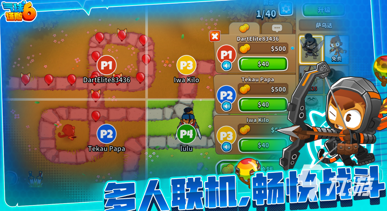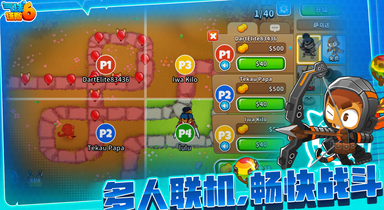 本作是款跟猴子、氣球相關的免費塔防類手游,支持多人聯(lián)機能給人帶來酣暢的塔防體驗,放置小猴子進行塔防戰(zhàn)斗的設定更加有趣,好玩創(chuàng)新的塔防機制跟路線選擇耐玩性更高,超豐富的任務體系、猴子類型也增加了耐玩性,各種各樣的強化設定幫助猴子的實力大大提升,一起在猴子幫助下獲得關卡勝利吧。