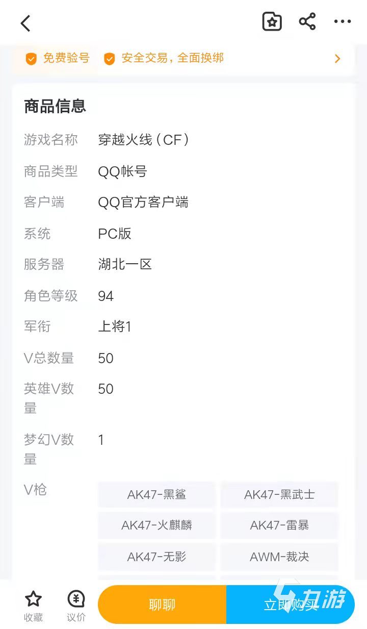 cf的賬號目前是比較珍貴的,尤其是精品號,這一類賬號內(nèi)基本上都包含了大量的高級武器,而在其他平臺上進行交易的話,玩家們的交易風(fēng)險也將偏大。所以為了保障玩家可以安心的購買到cf賬號,小編推薦大家直接到交易貓app當(dāng)中進行購買。